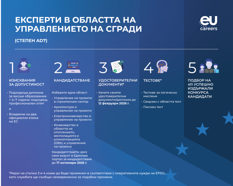 - Краен срок за кандидатстване : 17/10/2025 12:00 (брюкселско време)