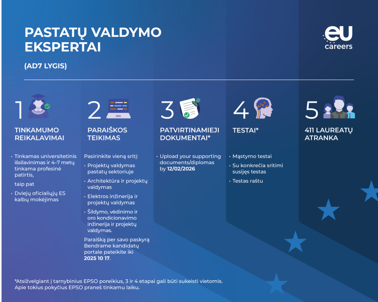 - Galutinis paraiškų teikimo terminas : 17/10/2025 12:00 (Briuselio laiku)