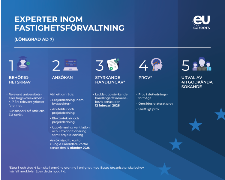 - Epso skickar all information under förfarandets gång till ditt ansökningskonto, t.ex. kallelser och provresultat.